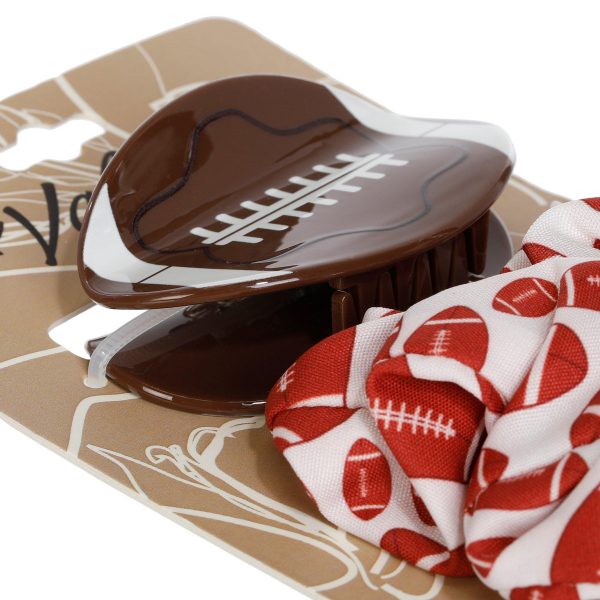 2 Pk Football Hair Clip & Scrunchie Set