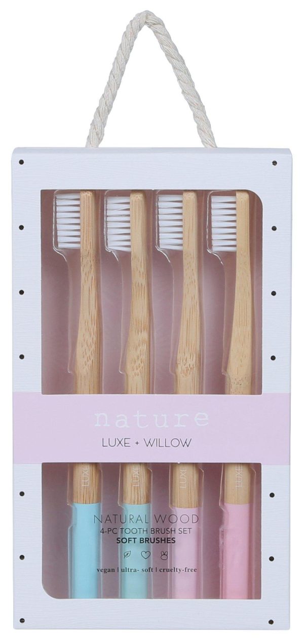 4 Pk Natural Wood Toothbrushes