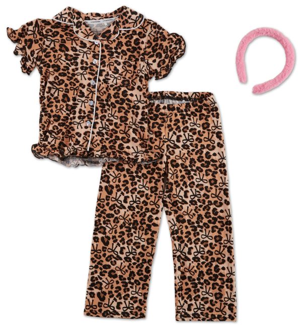 Girls 3 Pc Animal Bow Print Pajama Pants Set