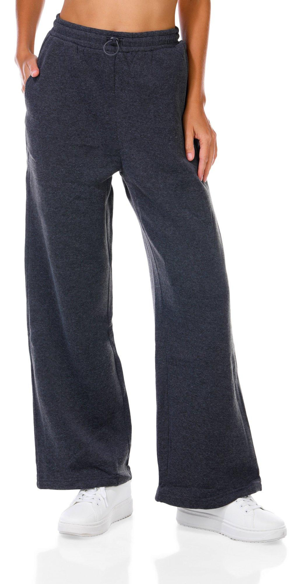 Juniors Solid Wide Leg Fleece Pants
