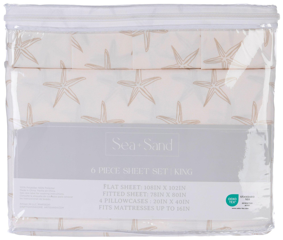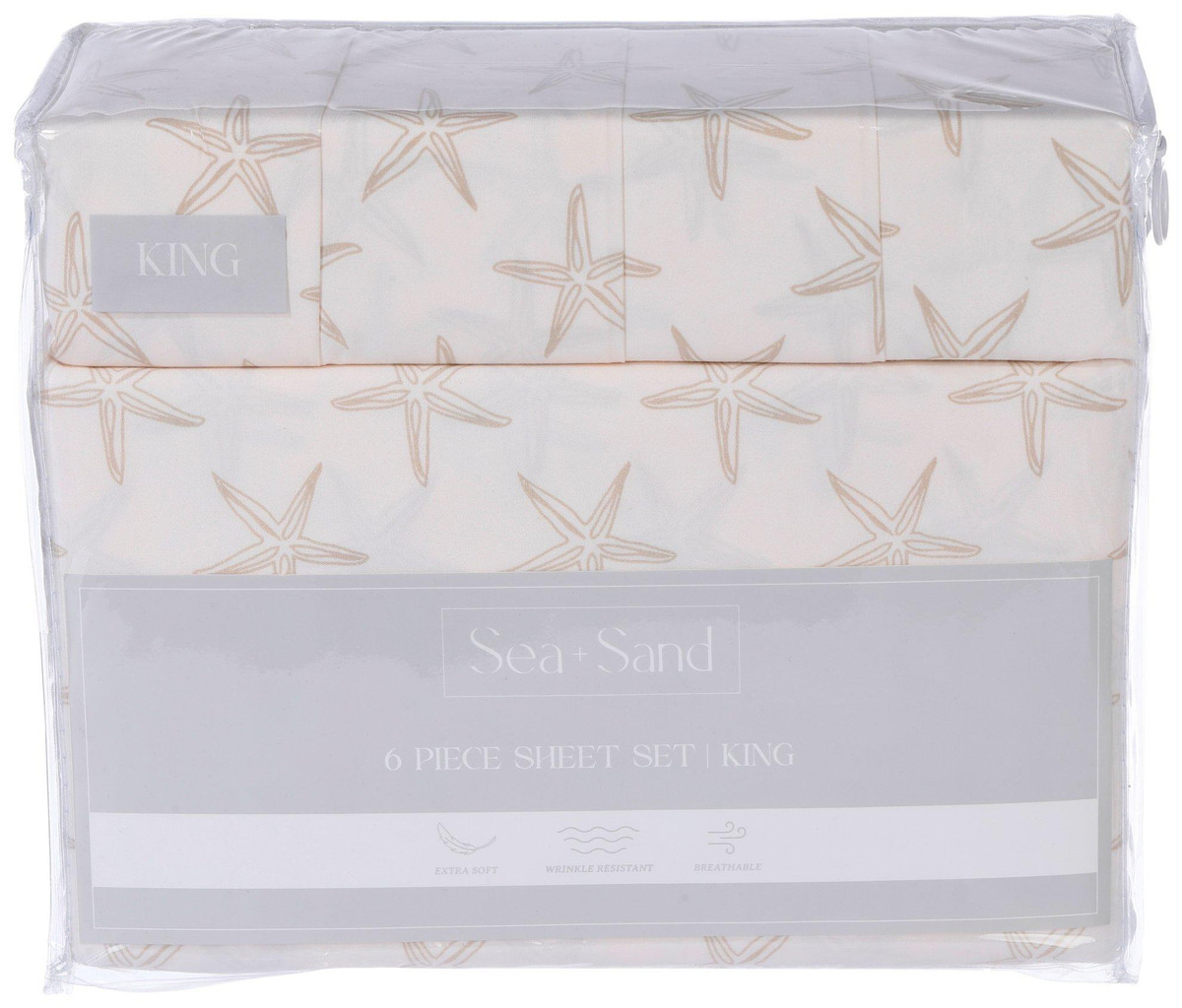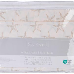 King Size 6 Pc Starfish Print Sheet Set