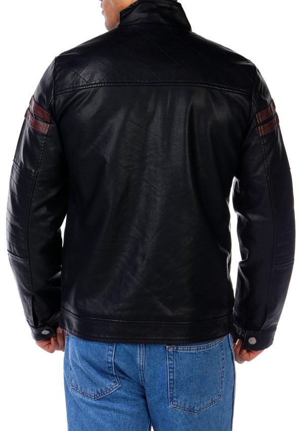 Men's Faux Leather Double Stripe Moto Jacket