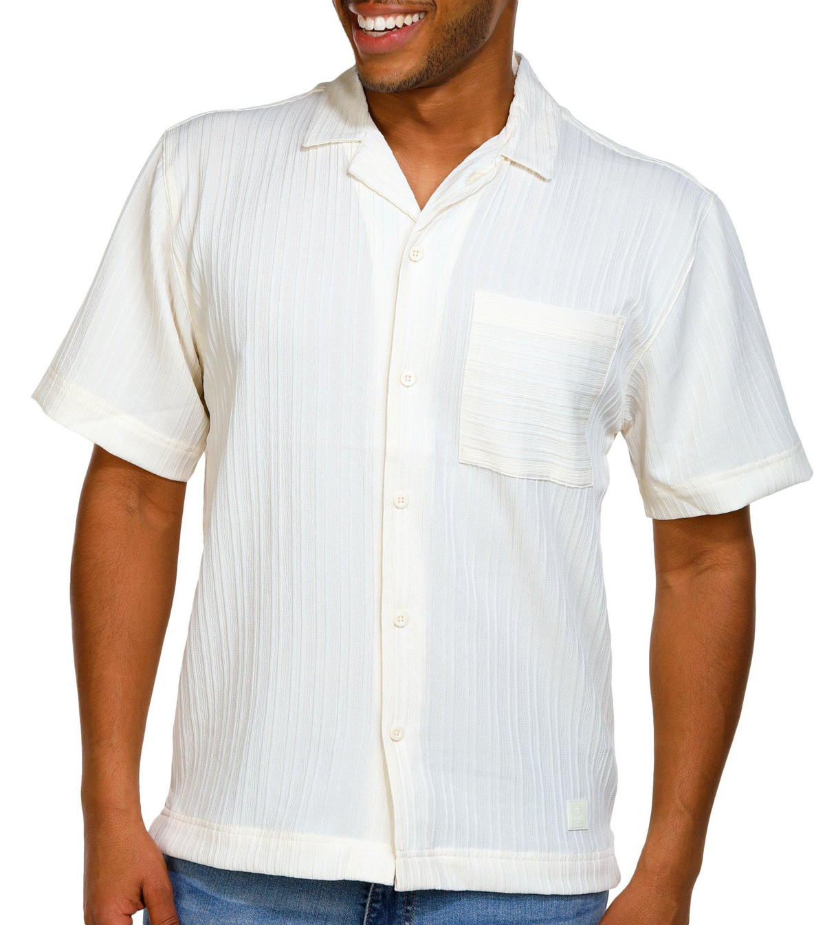 Men's Solid Ribbed Button Down Shirt