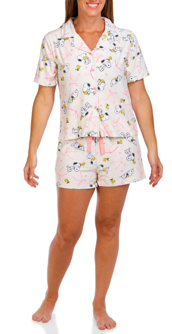 Women's 2 Pc Snoopy Pajama Shorts Set