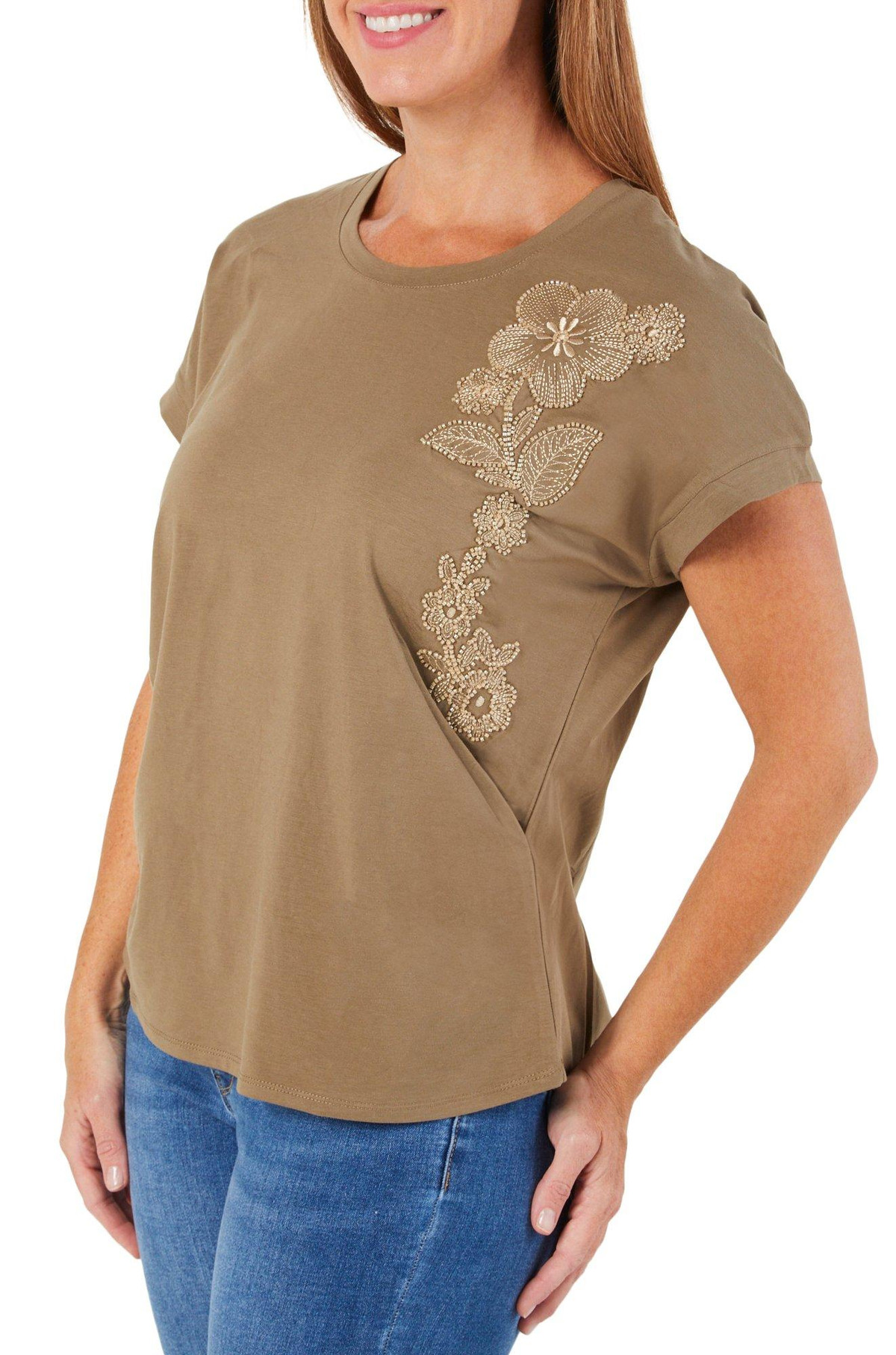 Women's Beaded Floral Print Top