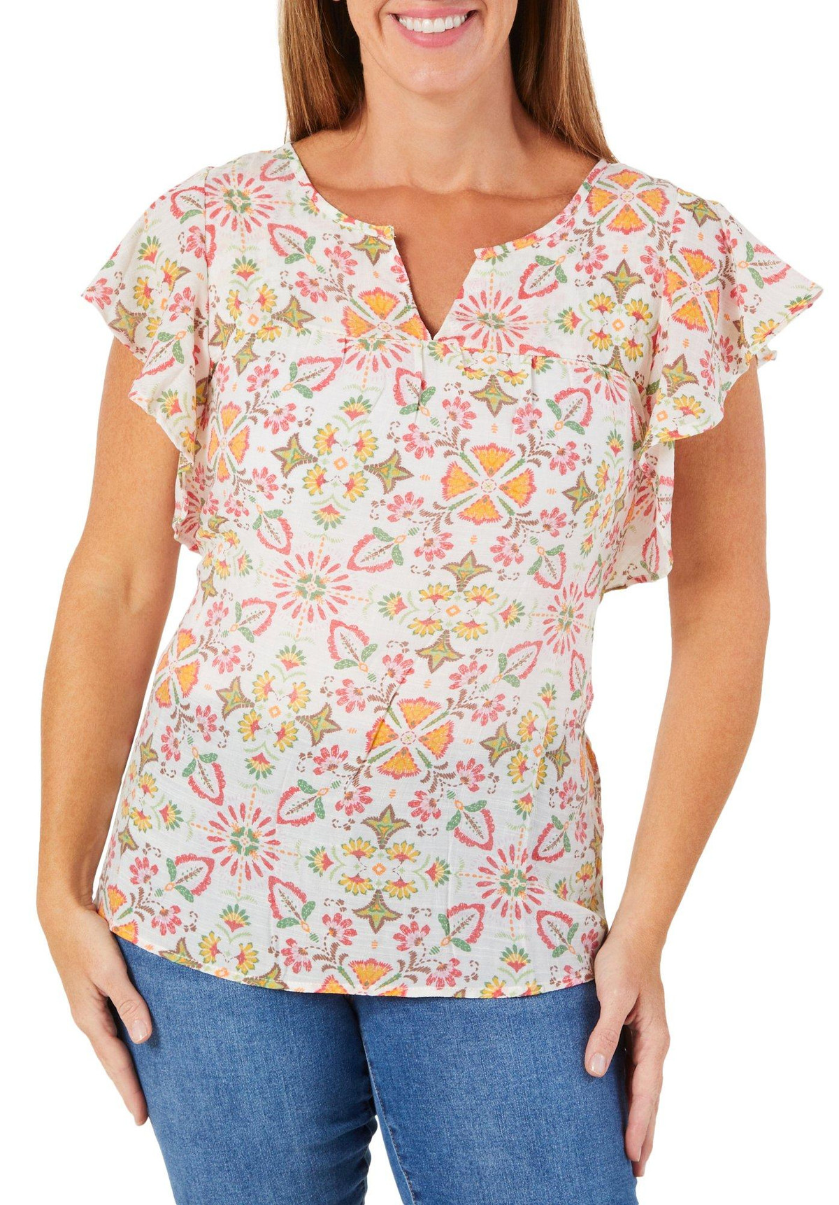 Women's Floral Flutter Sleeve Top