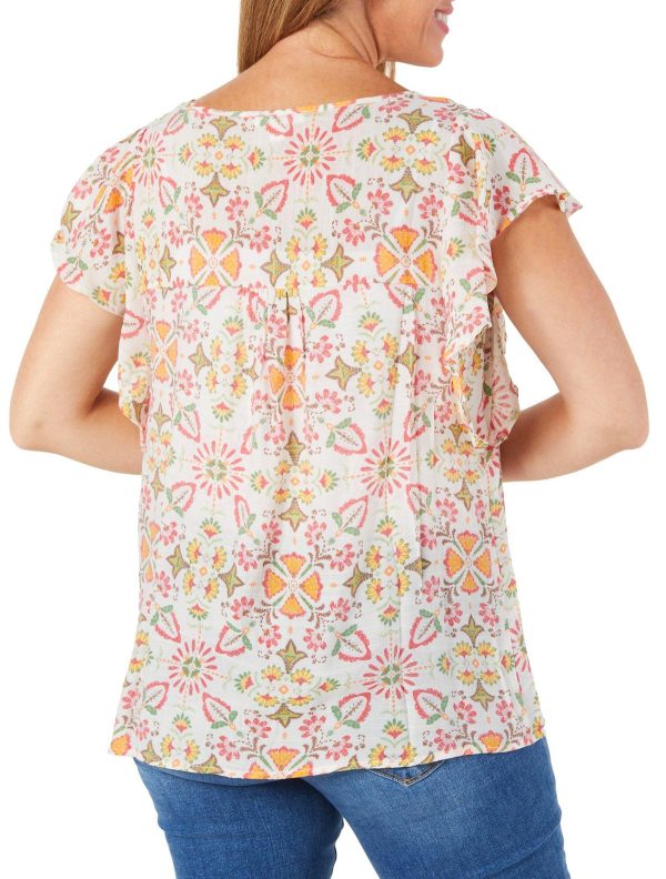 Women's Floral Flutter Sleeve Top