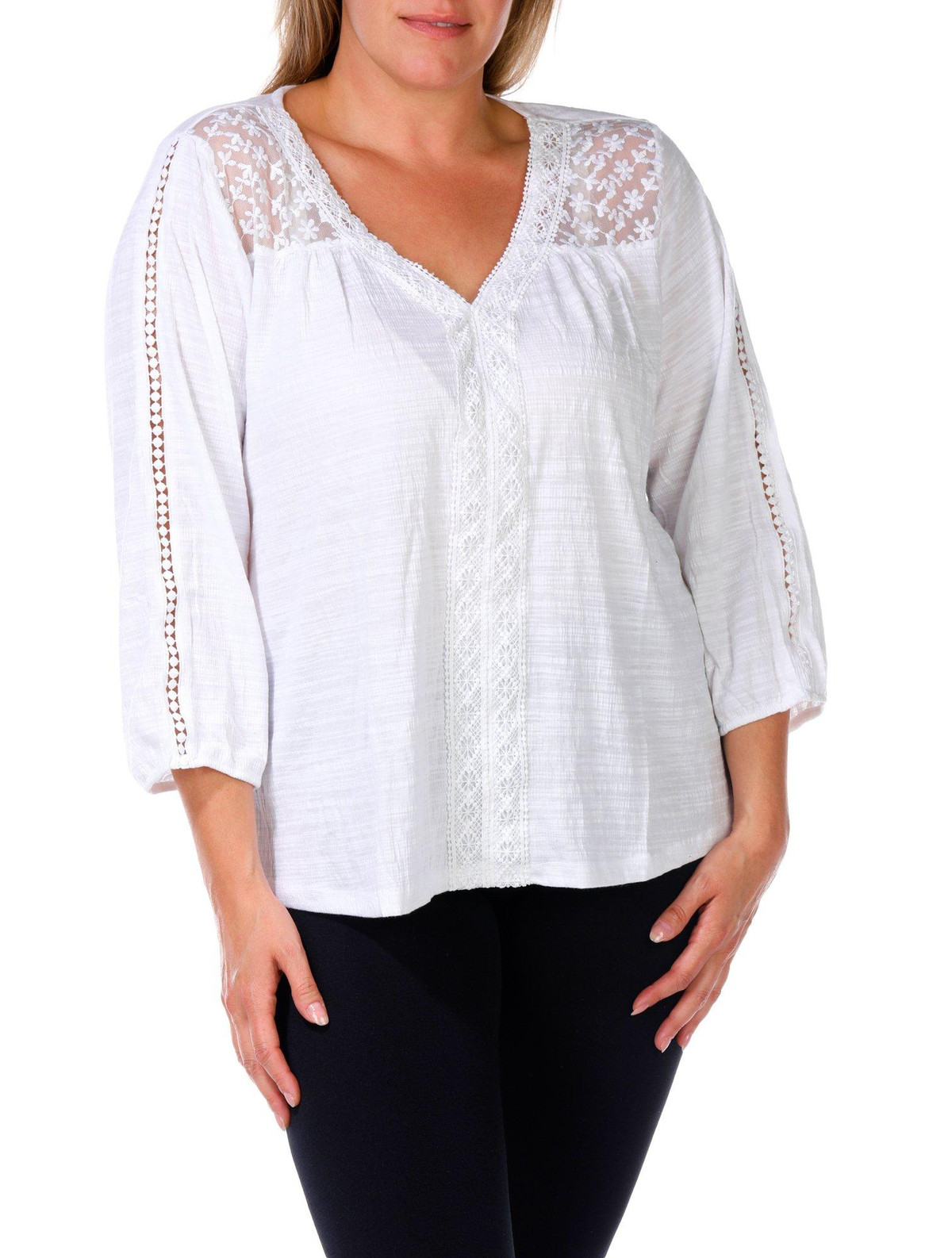 Women's Plus Crochet Trim Top