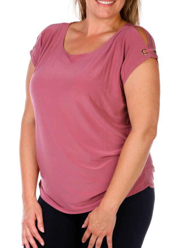 Women's Plus Solid Button Shoulder Top