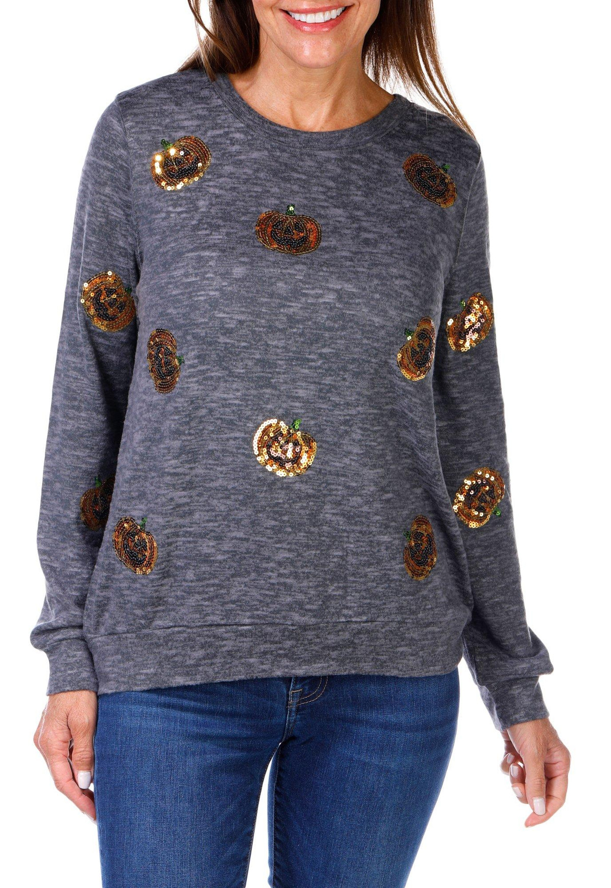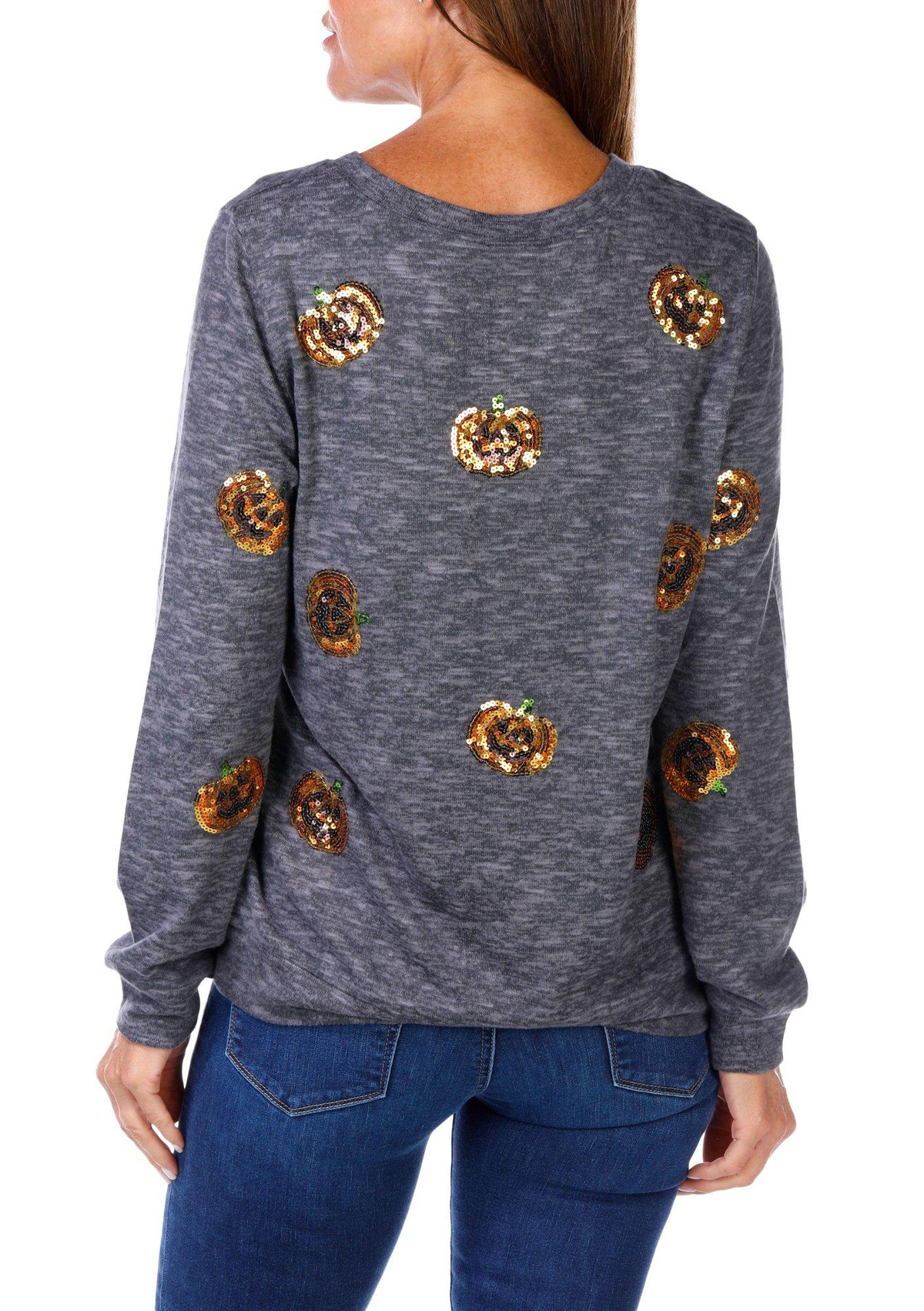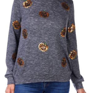 Women's Sequin Jack-o'-lantern Top