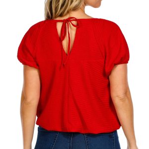 Women's Solid Bubble Hem Short Sleeve Top