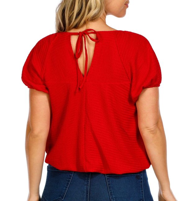 Women's Solid Bubble Hem Short Sleeve Top