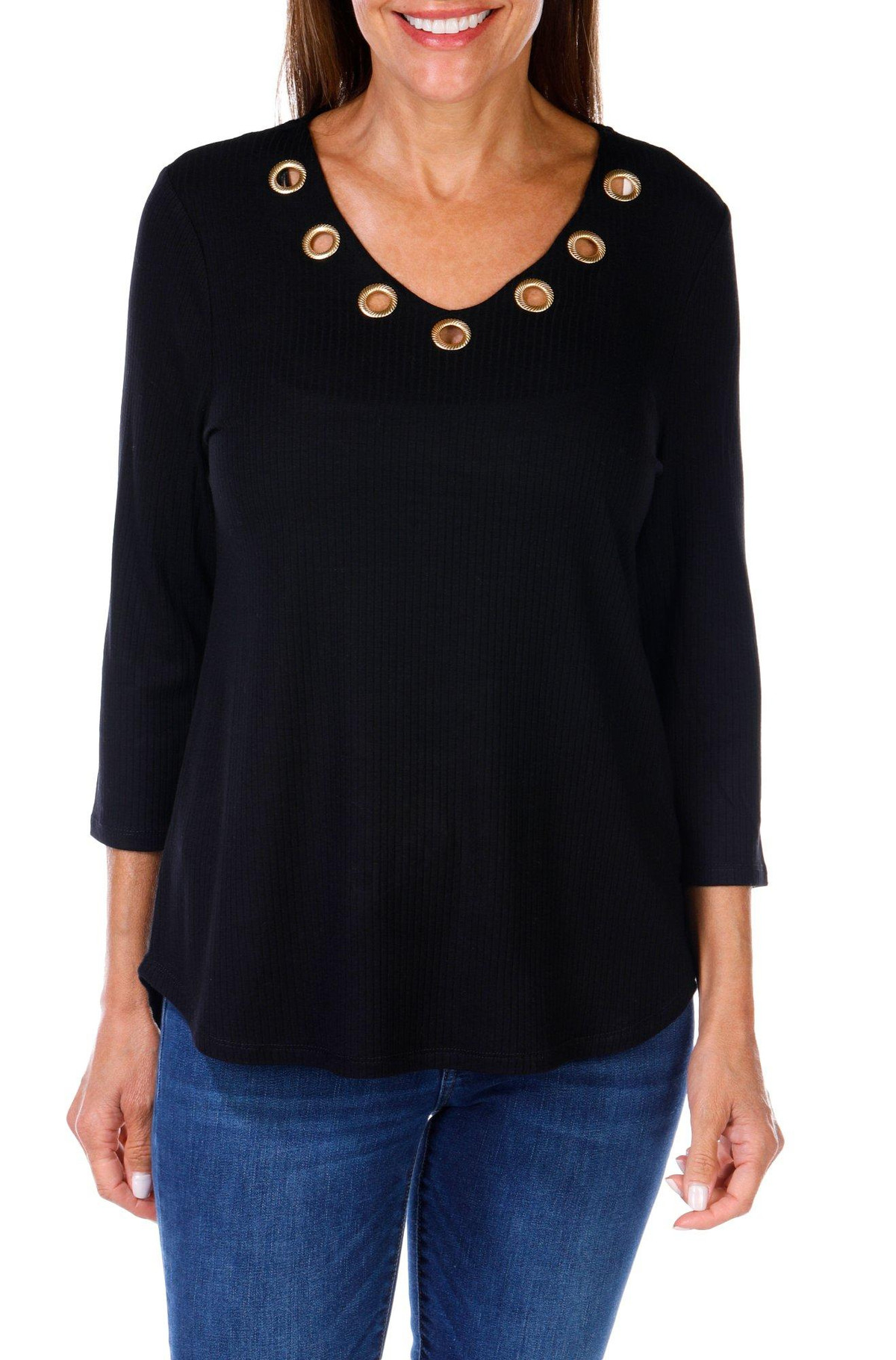 Women's Solid Grommet Neck Top