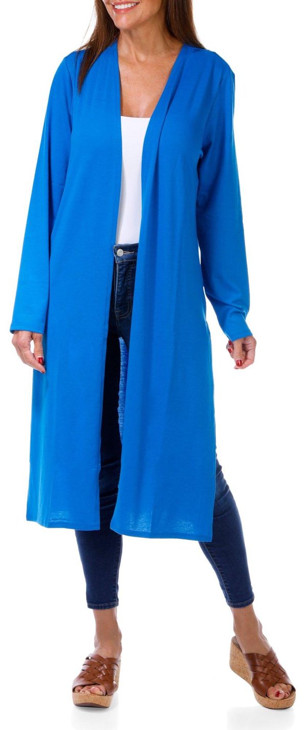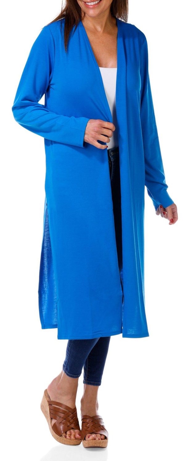 Women's Solid Long Open Front Cardigan